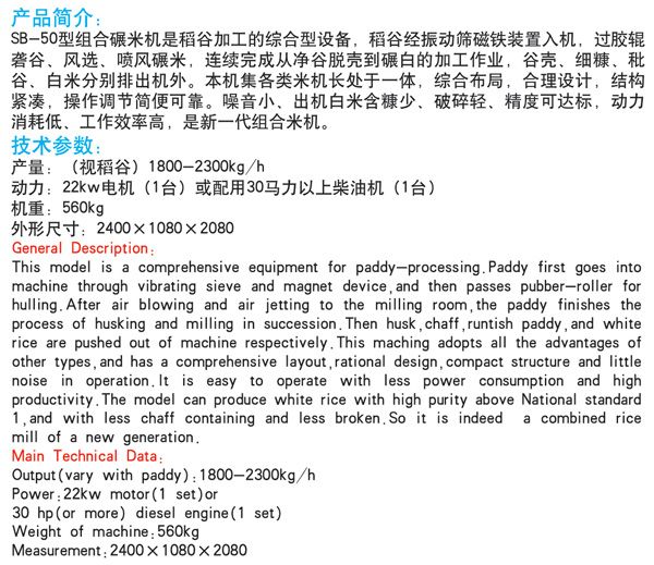 鱼台县三高机械有限公司三高牌组合砻碾米机有NZJ和SB两个系列,NZJ-10/8.5联合米机85年、90年连续荣获省优,联系人:袁经理:13705477344